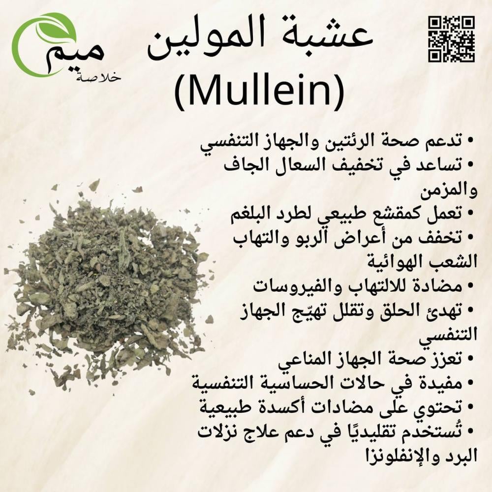 عشبة المولين(Mullein)50 جرامعشبة المولين (Mullein) لها العديد من الفوائد الصحية المحتملة، بما في ذلك دعم الجهاز التنفسي، وتهدئة الجلد، وتقليل الالتهاب...